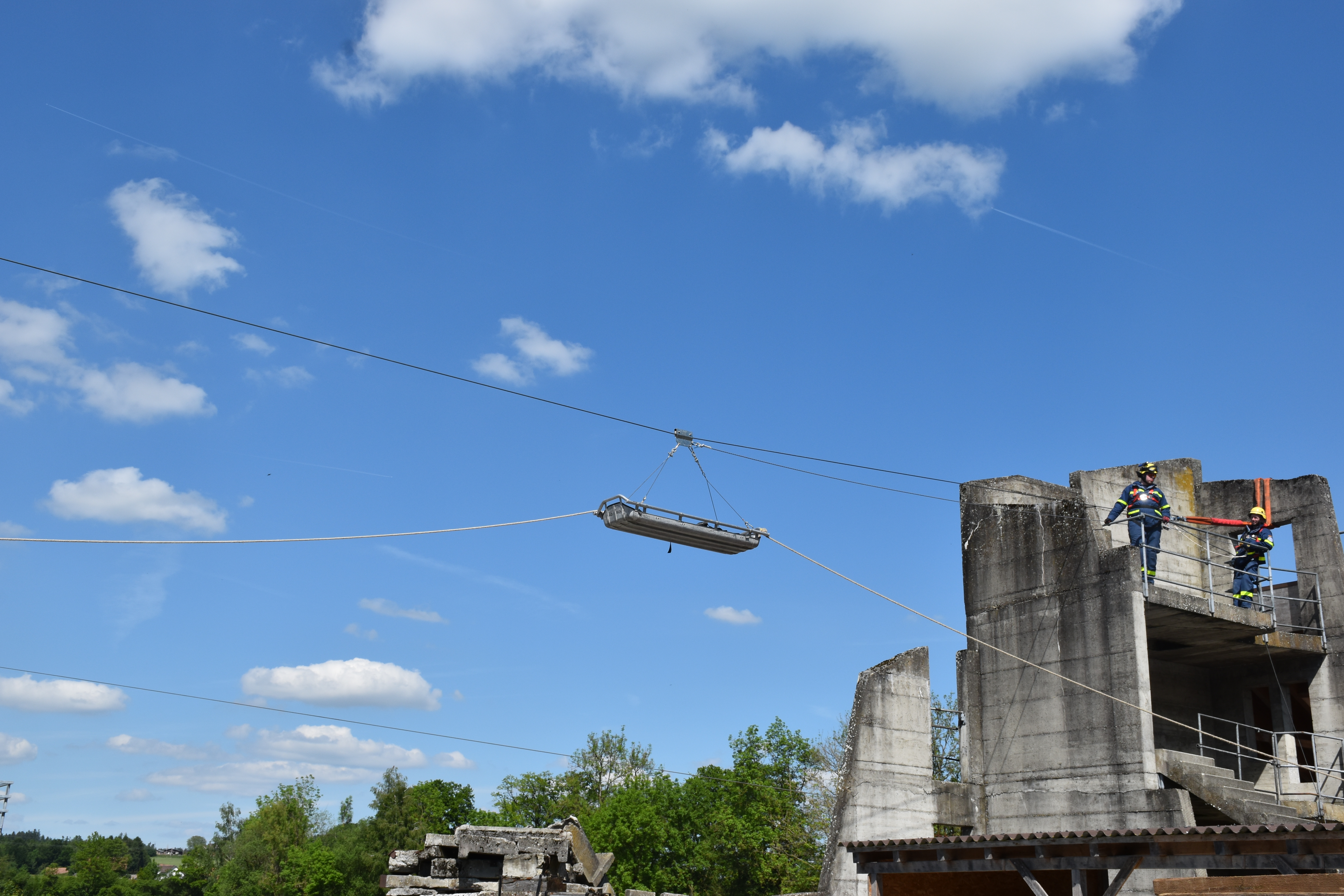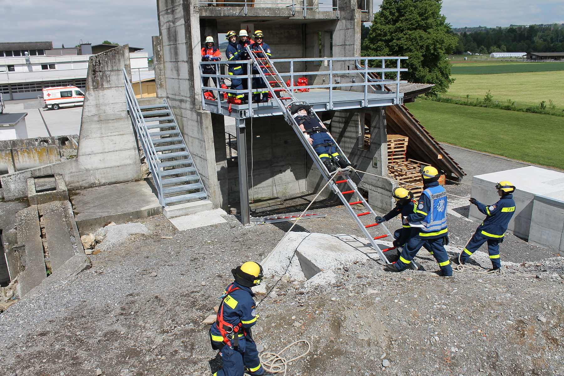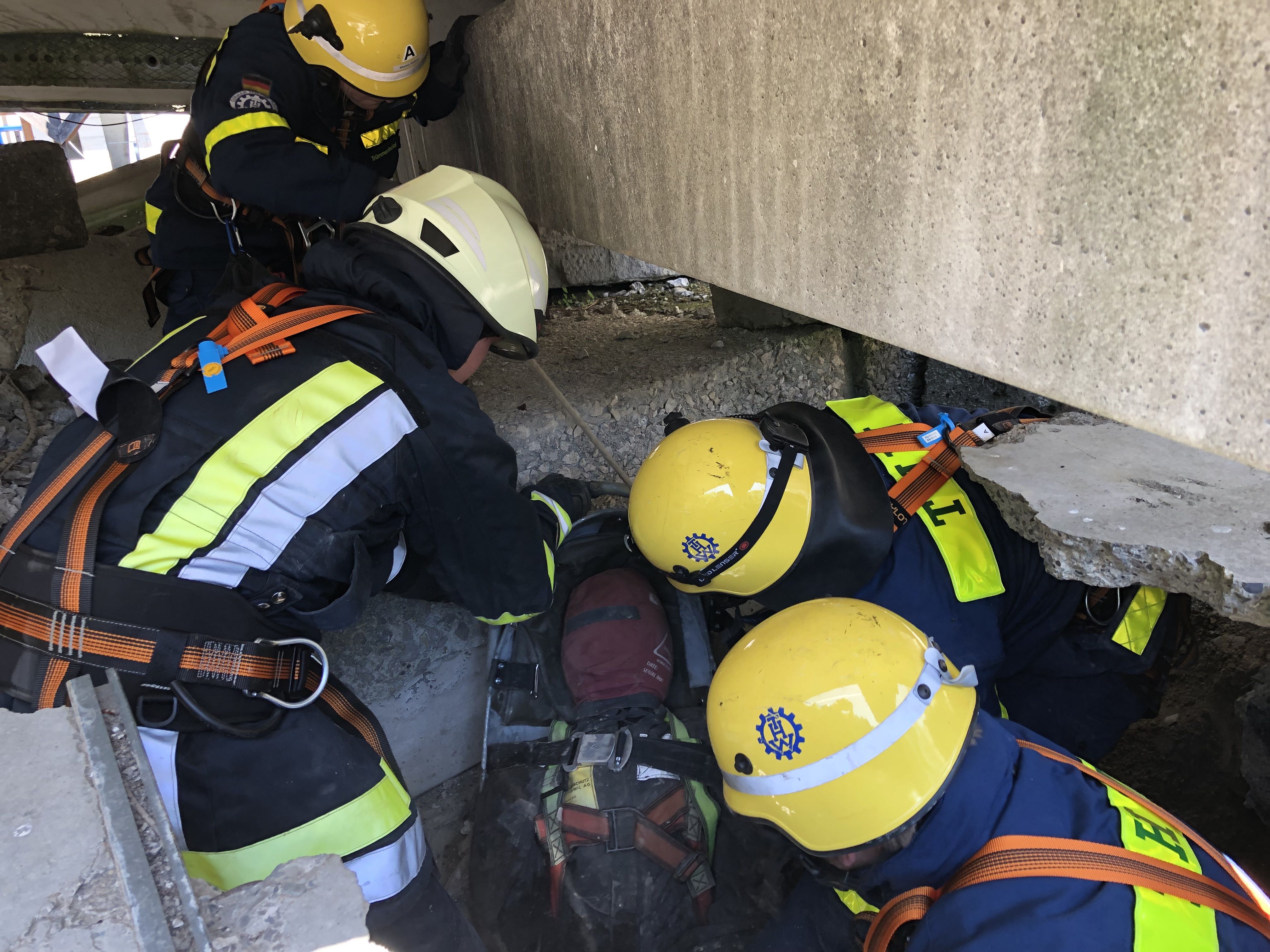 Der Brückentag wartete mit zwei Einsatzübungen auf: zunächst auf dem Übungsgelände des Zivilschutzausbildungszentrums Sempach und später in einem Steinbruch bei Wildegg. Im Rahmen der Einsatzübung am Morgen mussten zahlreiche Verletzte aus dem Trümmergebiet gerettet werden, bevor diese von den Rettungsdienstkräften versorgt wurden. Am Nachmittag verlegten die Kräfte schließlich nach Lenzburg im Kanton Aargau. Zusammen mit dem Pionierzug der Regiofeuerwehr wurde im nahegelegenen Steinbruch das Retten aus Fahrzeugen – mittels hydraulischem Rettungsgerät – unter erschwerten Bedingungen geübt. Die Fahrzeuge waren teilweise verschüttet oder lagen an einem Steilhang. Die Chance zum gegenseitigen Austausch blieb nicht ungenutzt.