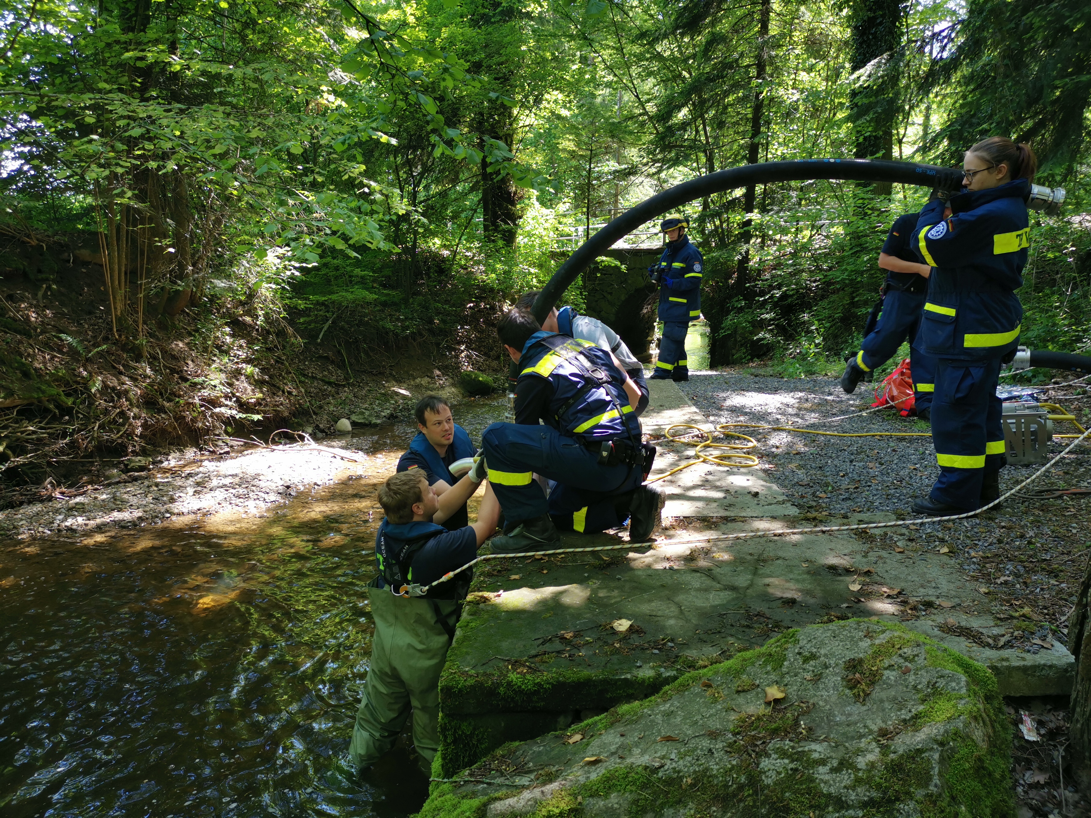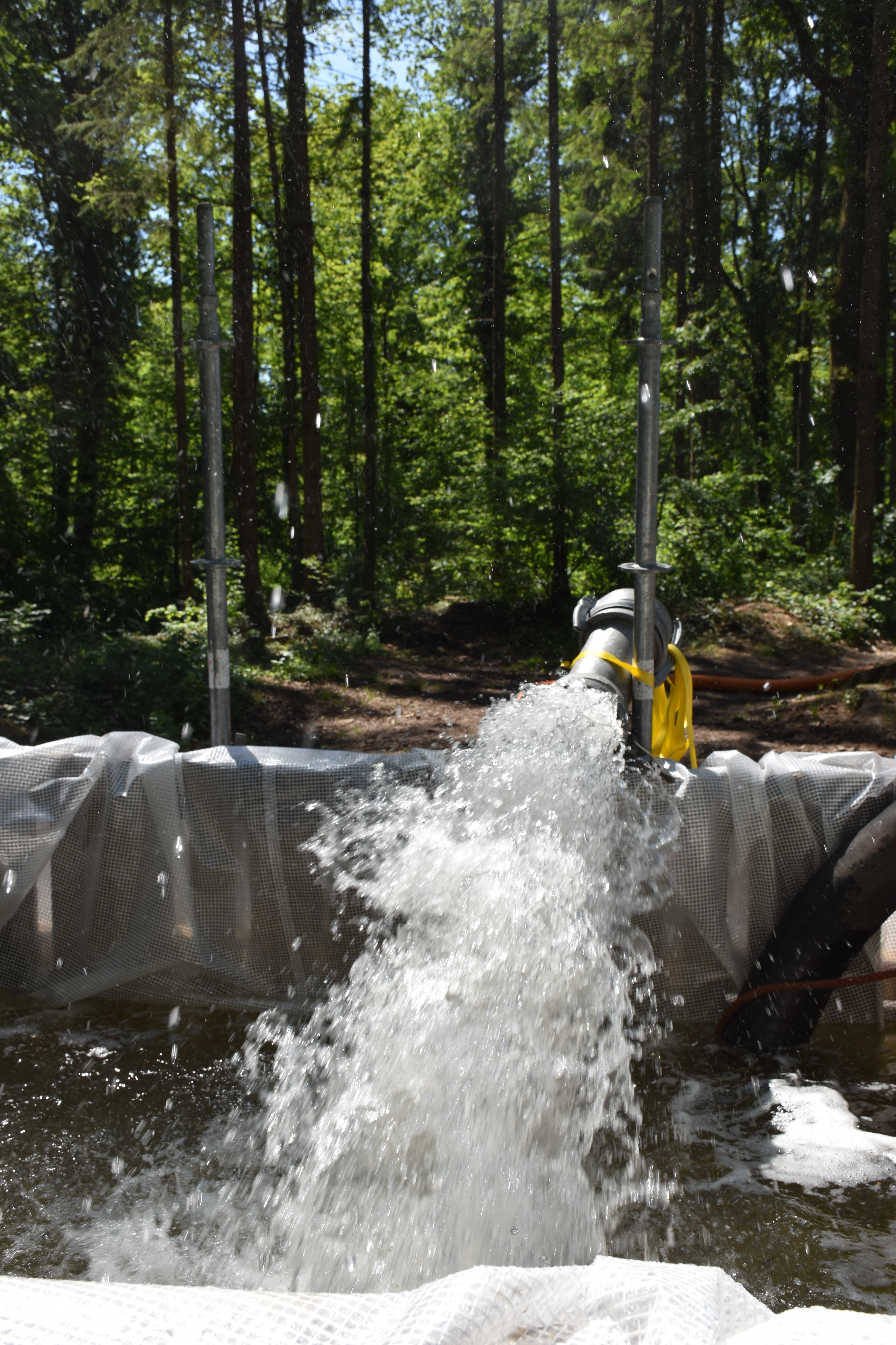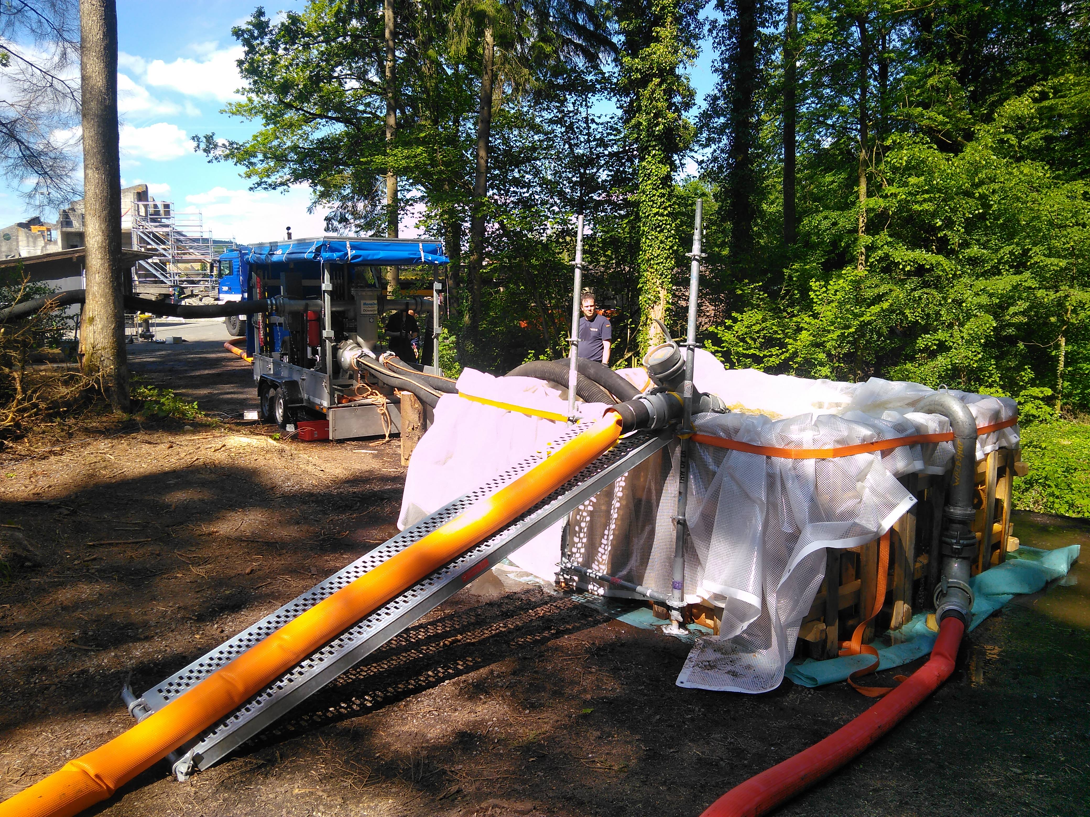 Die Pumpengruppe nutzte parallel den angrenzenden See zur Ausbildung an verschiedenen Klein- und Großpumpen. Zum Einsatz kamen dabei unter Anderem zwei Großpumpen des Typs Börger, welche eine Förderleistung von bis zu 5000l in der Minute haben. Des weiteren kamen verschiedene Pumpen mit Förderleistungen von 2000 - 4000l die Minute zur Wasserförderung über Wegstrecken im Puffer- oder Tandembetrieb zum Einsatz.