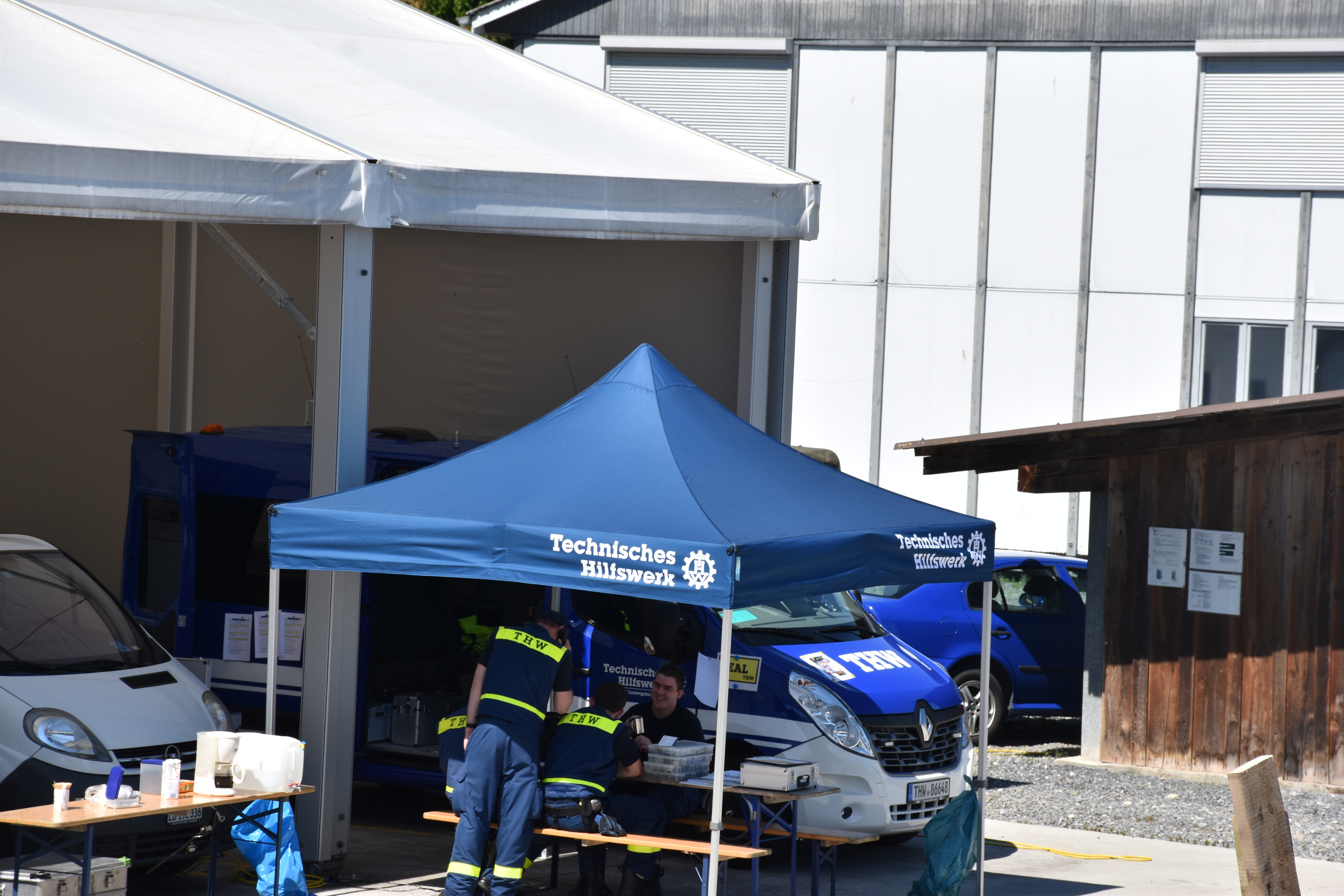 Nach einer Stärkung durch die parallel stattfindende Bereichsausbildung "Koch im THW" wurde bereits am Anreisetag der Umgang mit der Ausstattung der Bergungsgruppen vertieft. Am Freitag und Samstag fand die Ausbildung dann auf dem Gelände des Zivilschutzausbildungszentrums in Sempach statt. Das weitläufige Gelände bietet umfangreiche Möglichkeiten zum Training der Katastrophenschützer.