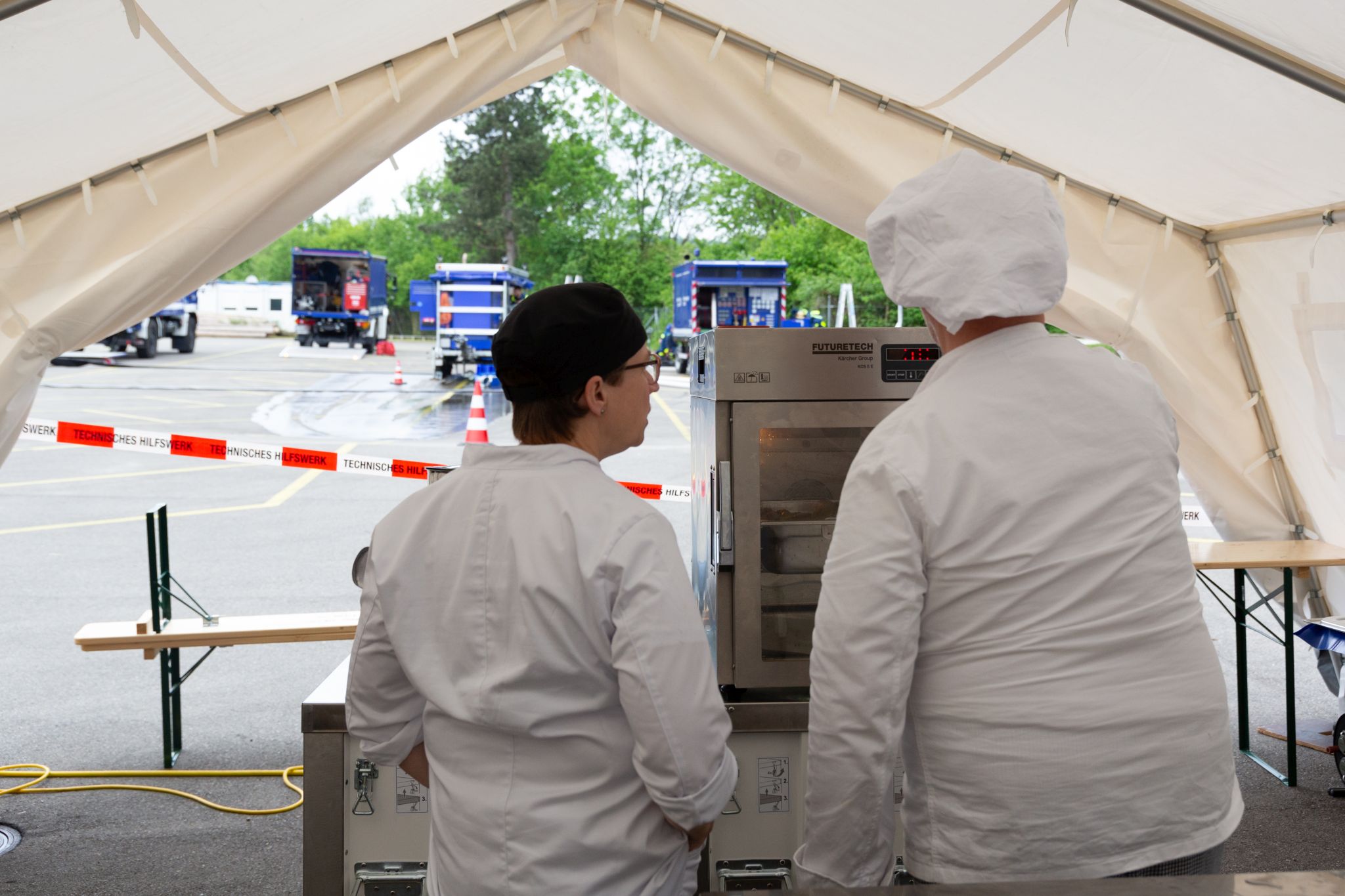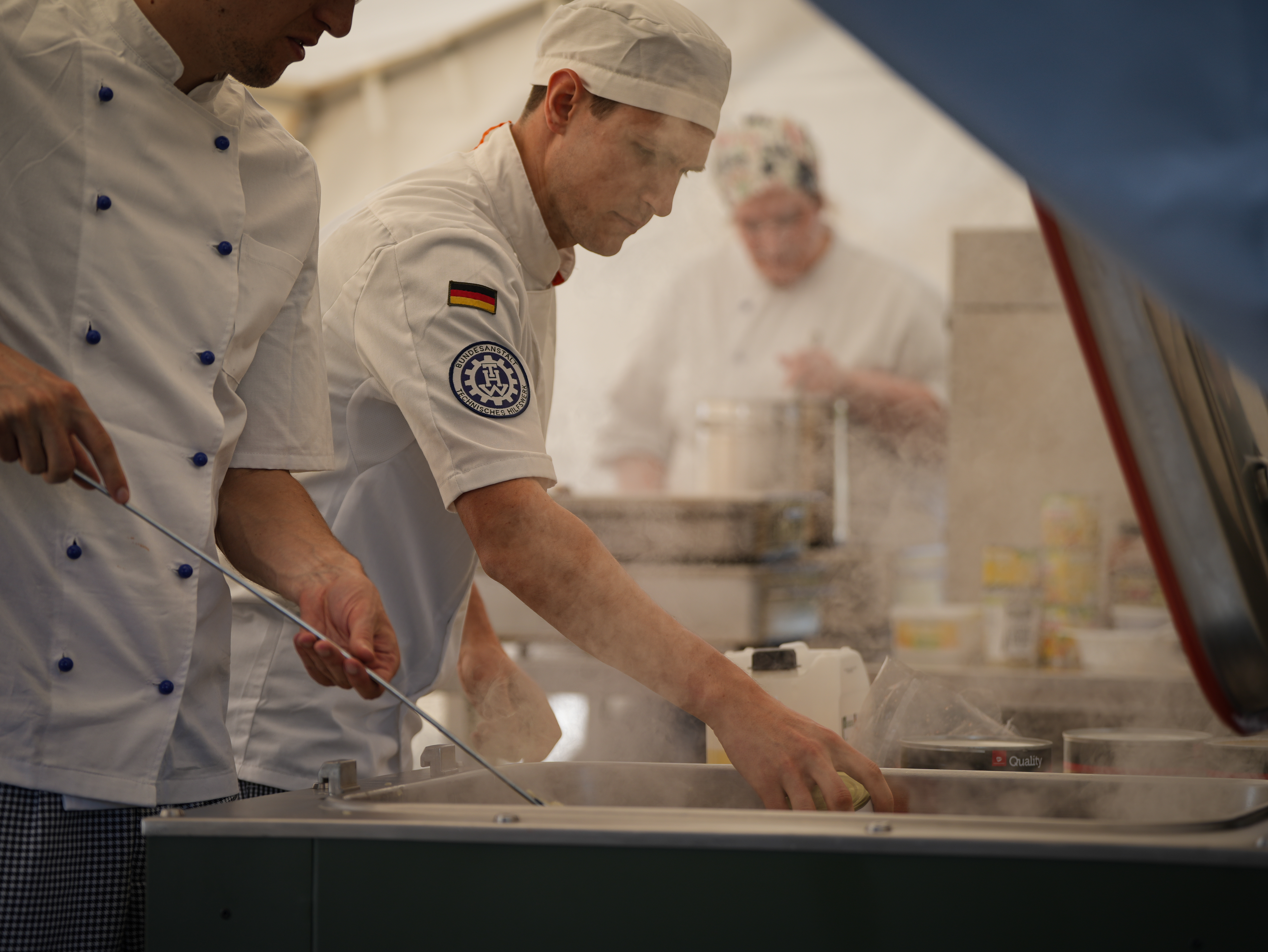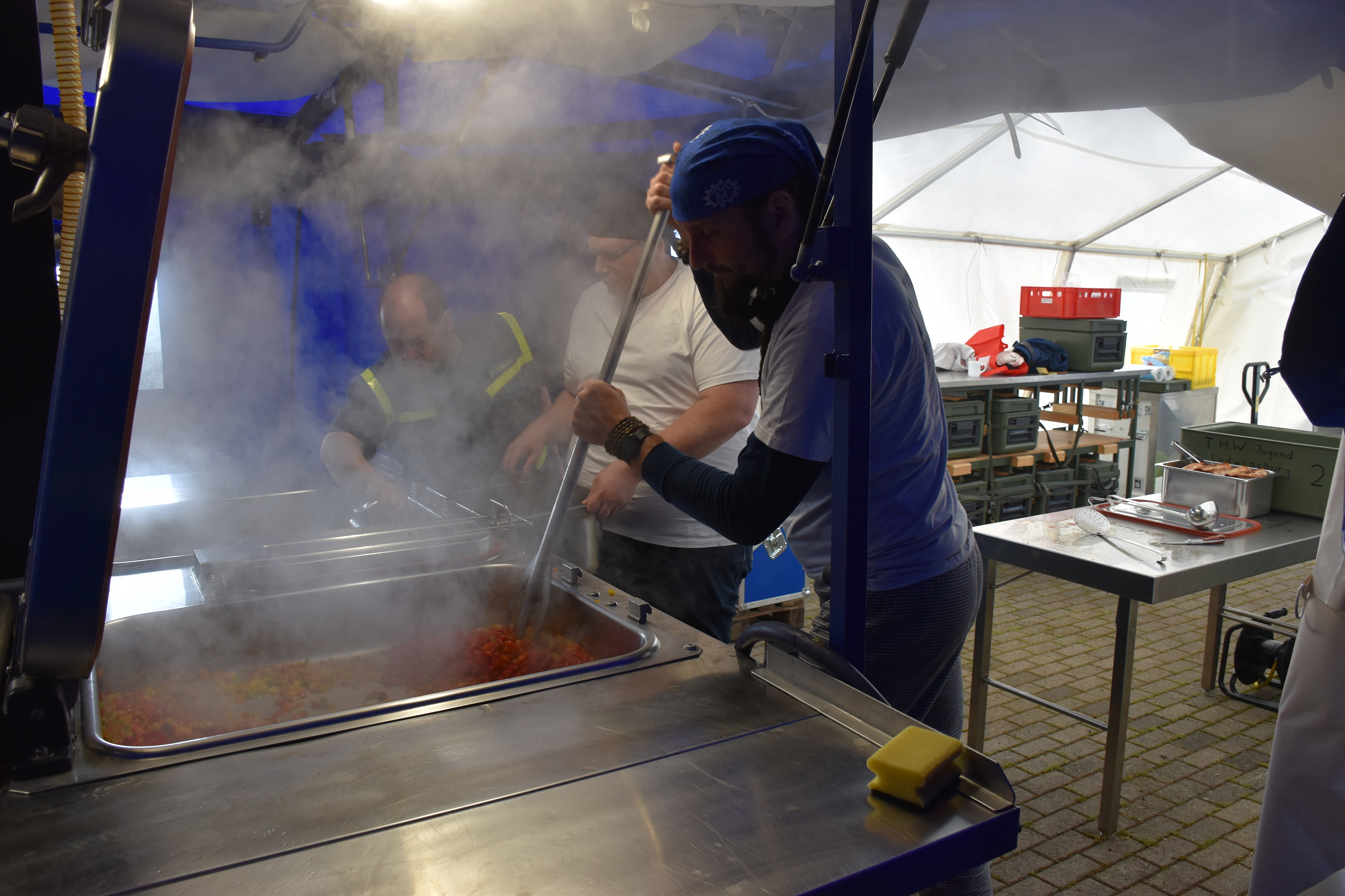 Um die Verpflegung aller Beteiligten sicherzustellen, findet parallel eine Bereichsausbildung (Feld)Koch/Köchin im THW statt.