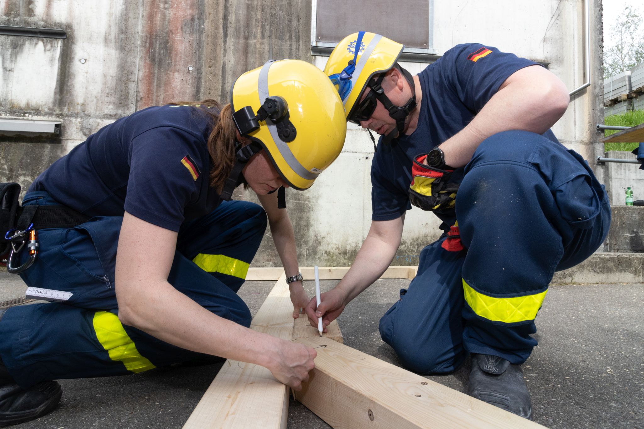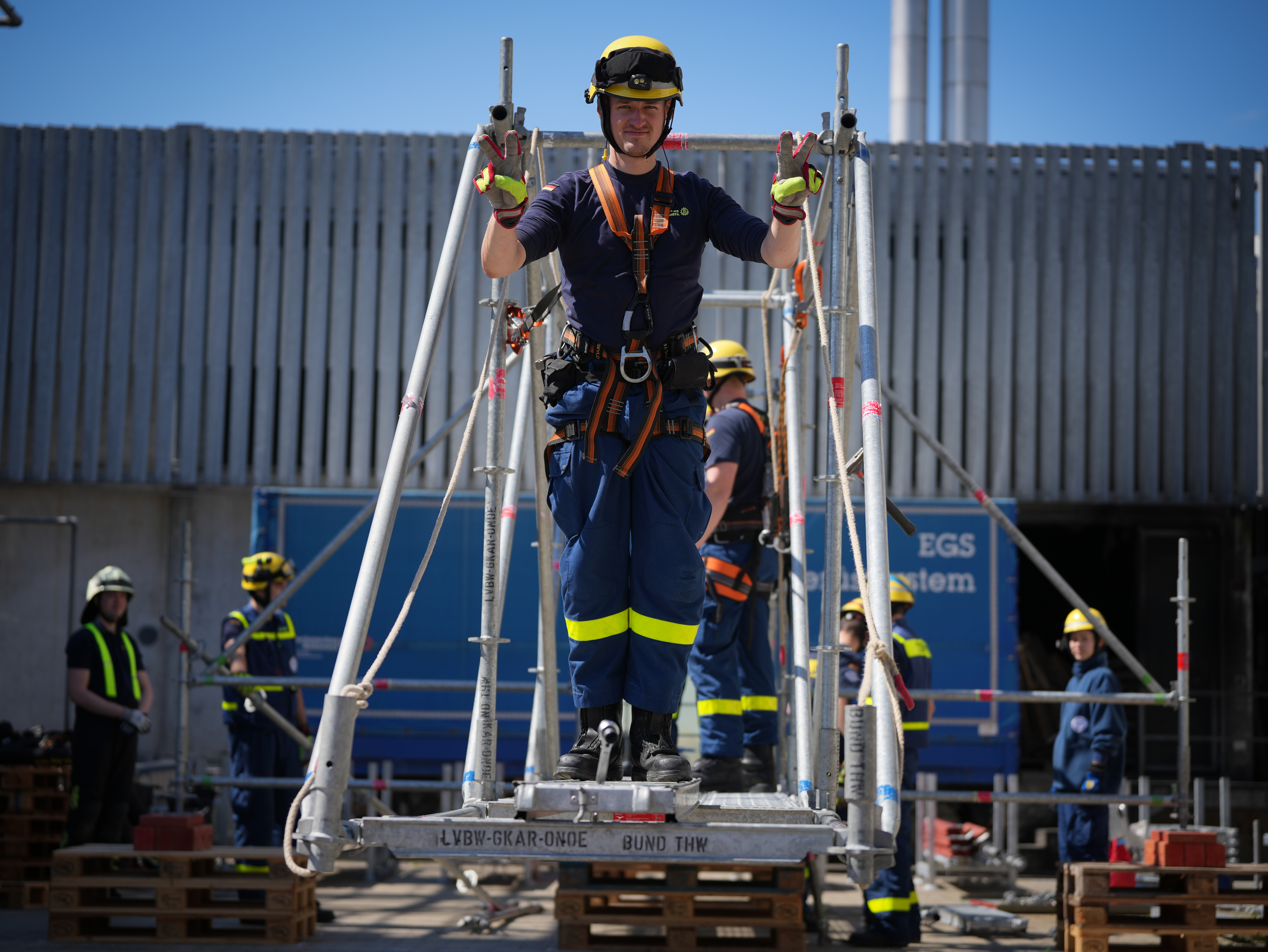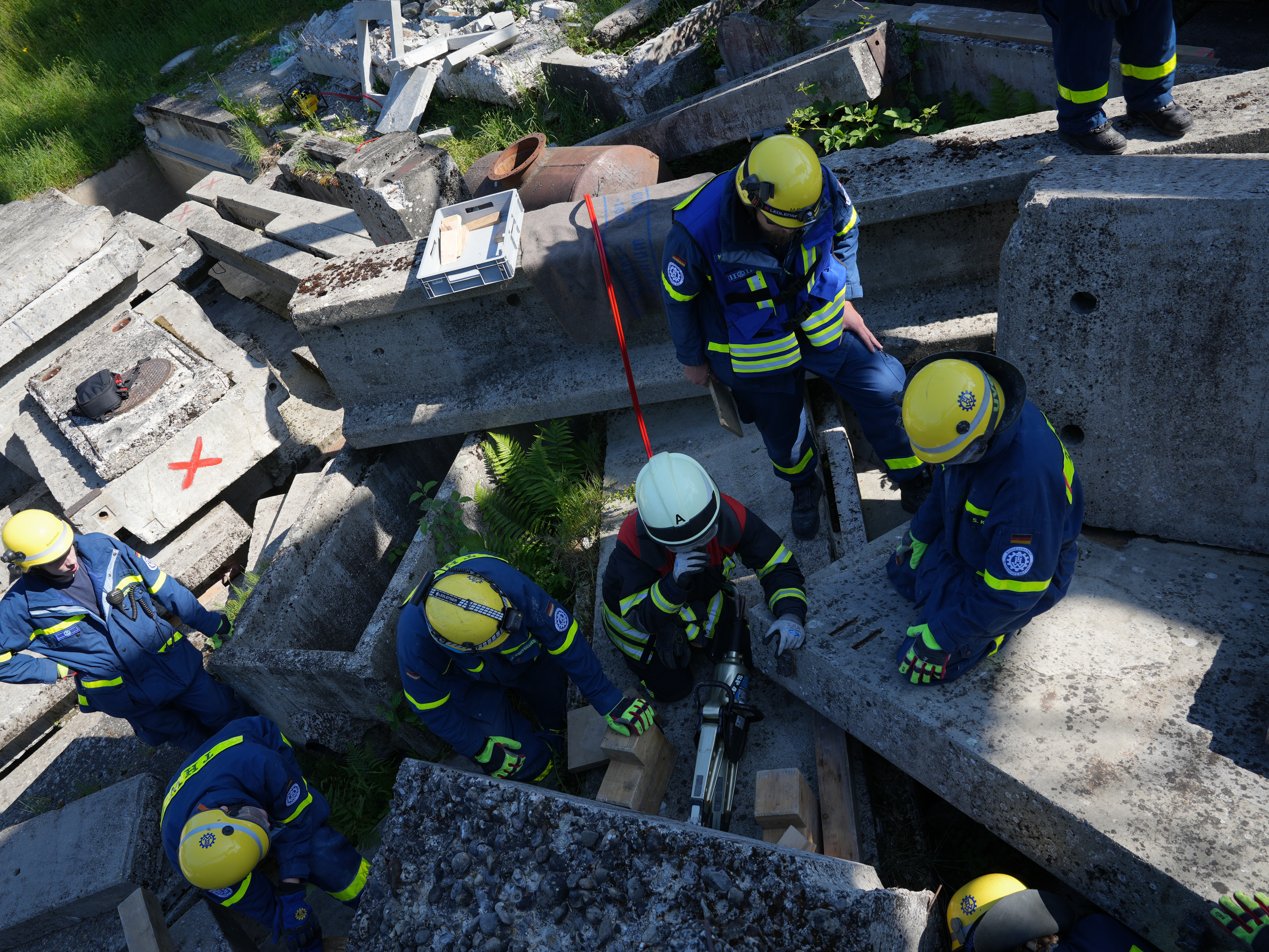 Vor Ort vertieften vier Bergungsgruppen ihre Fachkenntnisse mit den Schwerpunkten Personenrettung, Bewegen von Lasten, Durchbrechen von Trümmern und Überwinden von Hindernissen. Parallel errichtete die Fachgruppe Notversorgung und Notinstandsetzung ein Feldlager mit einer Verpflegungsstelle und vertiefte den sicheren Umgang mit der Motorsäge.