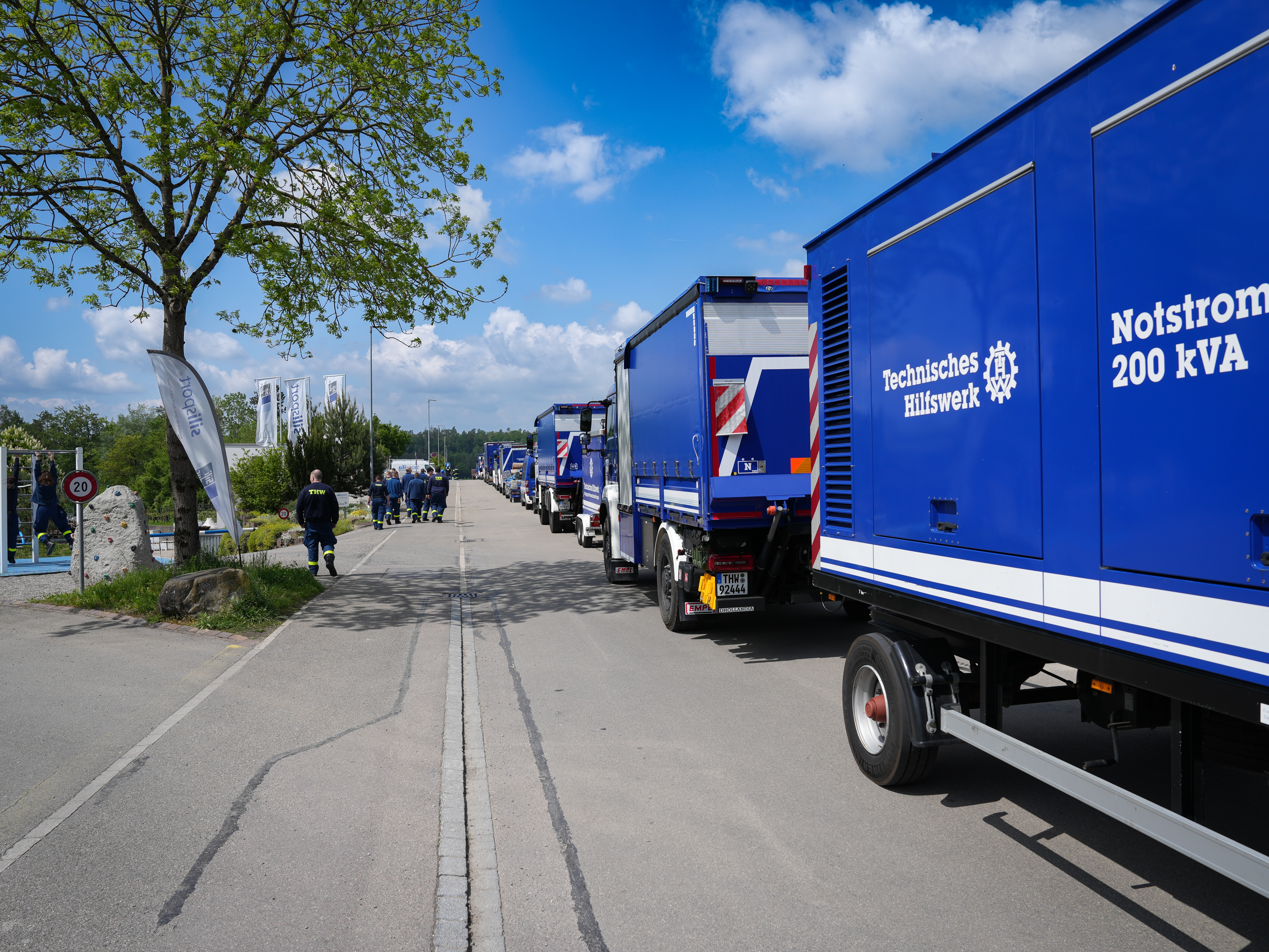 Über 100 Helferinnen und Helfer der Ortsverbände Ludwigsburg, Backnang, Bad Säckingen, Calw, Freudenstadt, Kirchheim/Teck, Mannheim, Niefern-Öschelbronn, Schorndorf und Wertheim bildeten auf der Fahrt zum Ausbildungsgelände des Zivilschutzes in Andelfingen eine 1,3 Kilometer lange Kolonne.