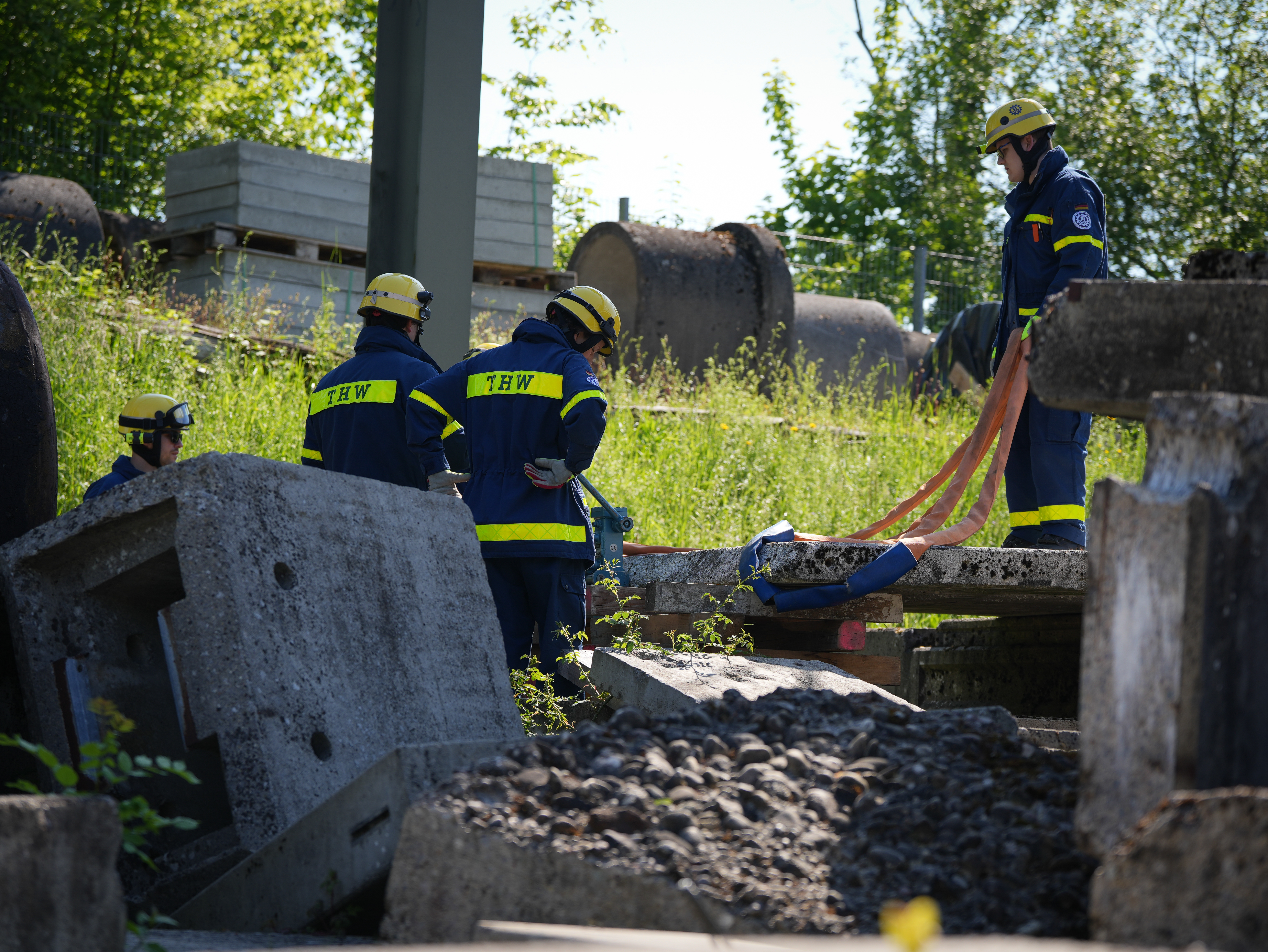 Neben dem Orten Verschütteter, dem Bewegen von Lasten und dem korrekten Umgang mit den Großpumpen des THW standen auch die Führungsausbildung des Zugtrupps und das Retten von Personen auf dem Ausbildungsplan. In gemischten Gruppen mussten die Teilnehmer die gestellten Aufgaben abarbeiten.