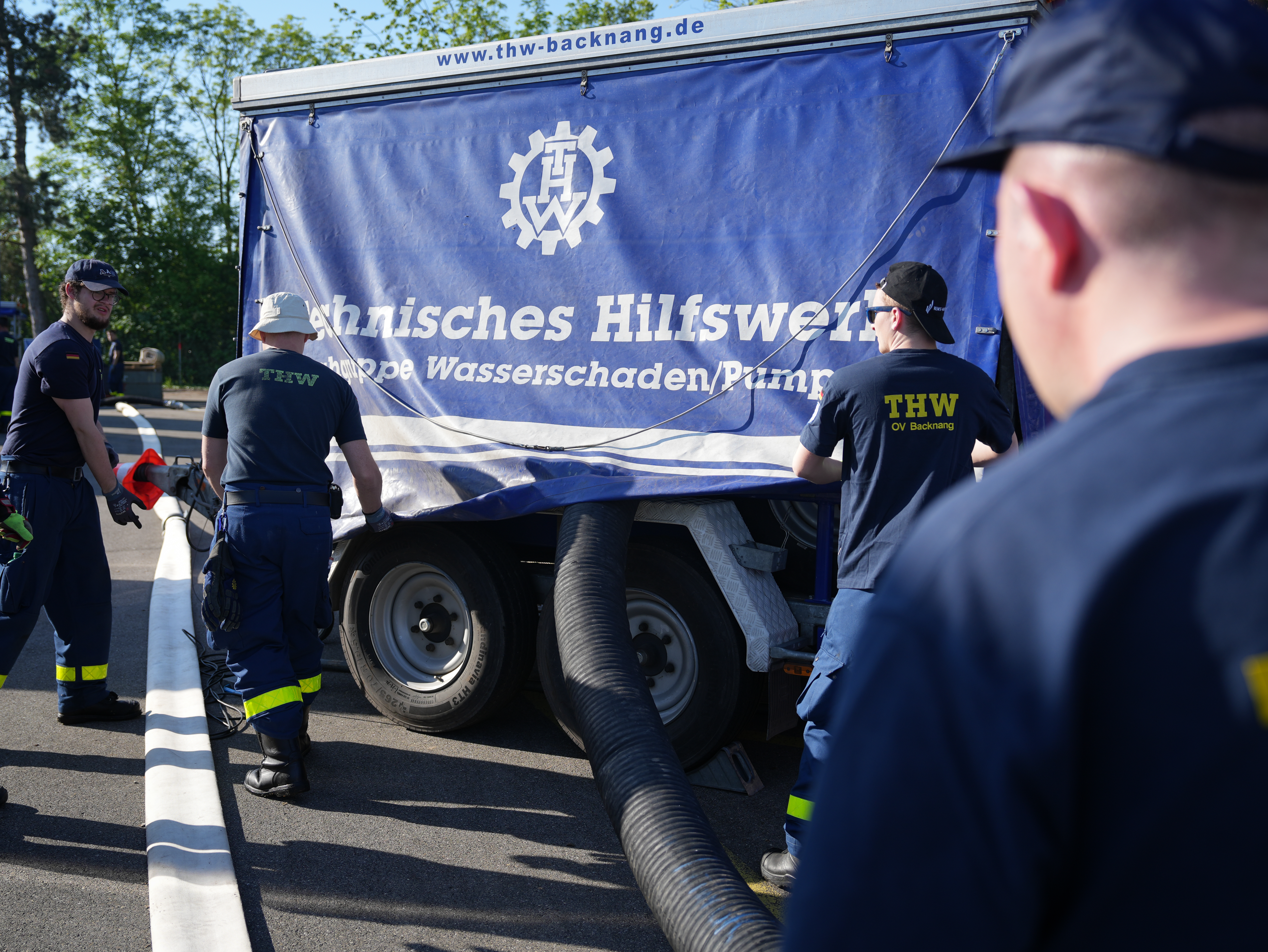Am nahegelegenen See übten drei Fachgruppen Wasserschaden/Pumpen den Betrieb ihrer Großpumpen vom Typ DIA, Hannibal und Börger. Die Ausbildung für Maschinisten Stromerzeugungsaggregat (SEA) sorgten für ausreichend Power, während zwei Zugtrupps sich mit Lagekarte und Einsatzführung auseinandersetzten.